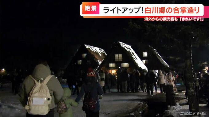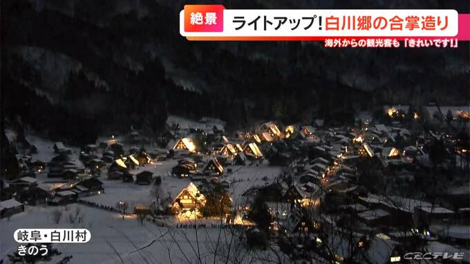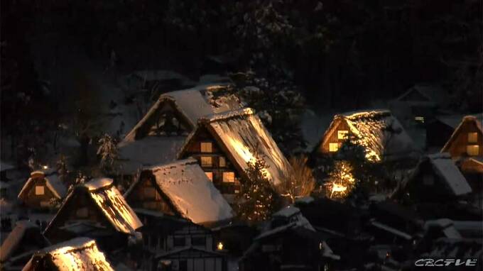 14日に行われた世界遺産・白川郷(しらかわごう)のライトアップです。108基のライトを一斉に点灯させると、合掌造り集落が美しく浮かび上がりました。