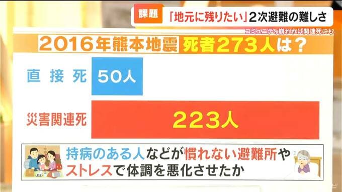 行政としては「また大きな揺れが来たら危険だ」とか「支援が難しい」ということも2次避難を促したい理由だと思いますが、災害関連死の面でもやはり2次避難の方が安全というところですよね。