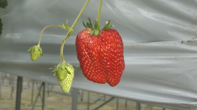 通常サイズの数倍もある巨大なイチゴ「でかほっぺ」の収穫が、愛知県岡崎市で始まりました。