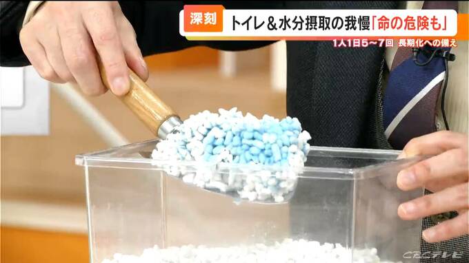 災害時のトイレには「猫砂」が有効 トイレを我慢すると死に至る危険性も 1人あたりの排せつ回数は1日5回 2024年1月19日(金) 19:30 国内 能登半島地震の被災地では、トイレの問題が深刻になっています。この問題が健康に及ぼす影響は深刻です。トイレを我慢すると体に様々な影響を及ぼしてしまいます。災害派遣医療チーム=DMATの一員として、被災地で…