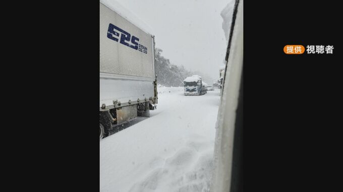 「関ヶ原インターの3キロ手前にいて、午前11時に止まってから1ミリも動いていない。どんどん積もっていて歩くのも困難な高さ。タイヤの半分くらい埋まってる」