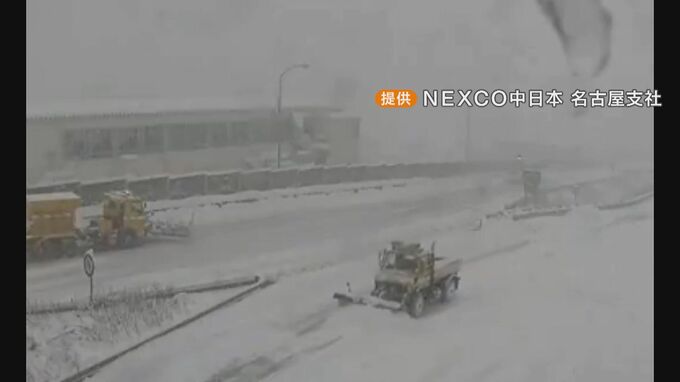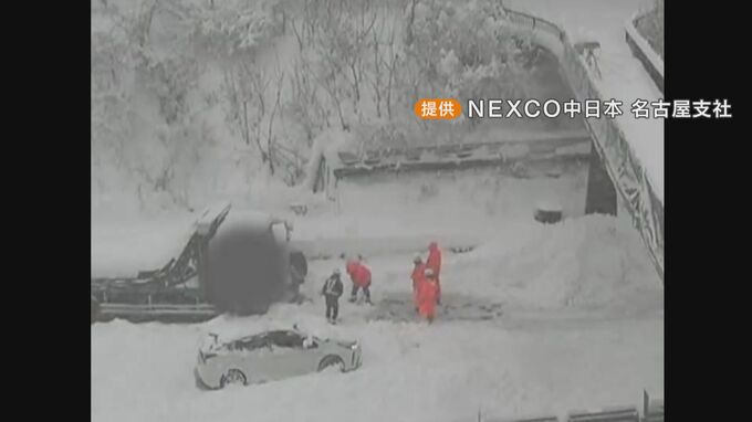 大雪の影響で、岐阜県関ケ原町付近の名神高速では複数の車が立ち往生しています。