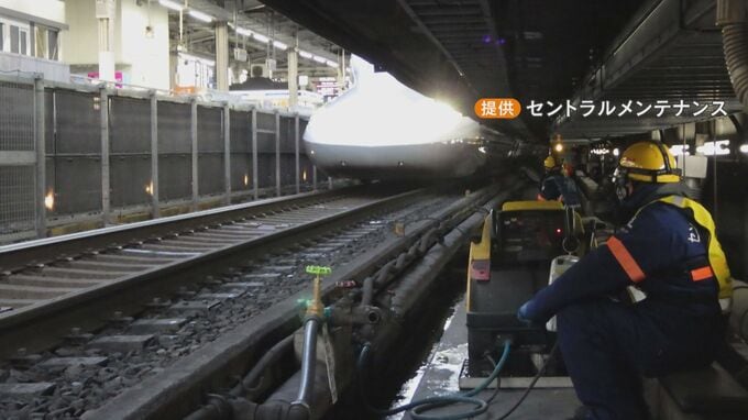 「雪を巻き上げて、新幹線の下に雪がついていしまう。雪の塊が走行中に落ちてしまうと、車両の機器や沿線の設備を壊してしまうので、雪を落とす作業をしています。腰をかがめての作業になるし、やはり非常に寒いので大変になりますが、日本の大動脈・東海道新幹線を支えるために必要な任務だと思ってやっています」