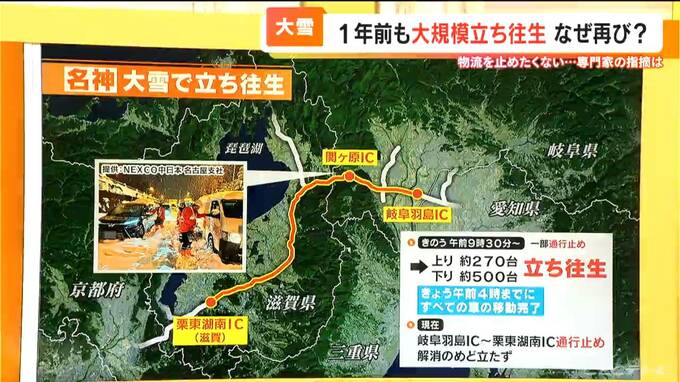 25日午前4時までに車の移動は全て完了したということなんですが、ただ、関ヶ原インターの東、岐阜羽島インターから、関ヶ原を越え、ずっと西の滋賀県の栗東湖南インターまでの通行止めは、34時間も続きました。