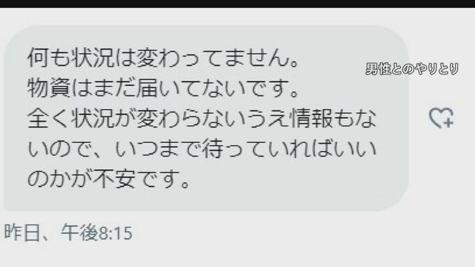 この福井に向かっていたドライバーは、24日の午後10時までは車に救援の物資も届かなければ情報もなく、不安な時間を過ごすことに。飴をなめてしのいだと言います。
