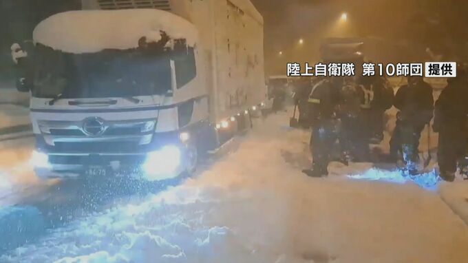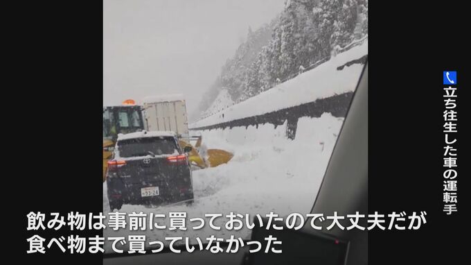 「午後10時ごろにネクスコ中日本の人が来て、おにぎり2つとお茶をいただいた。その後、自衛隊とネクスコ中日本の人がスコップやそりなどで除雪をしていた。車が動き始めたのは、深夜1時半ごろ。ああやっと家に帰れると思って安心した」