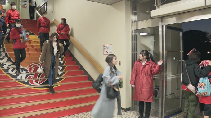 訓練は試合中に南海トラフ巨大地震が起き、震度6強の揺れを観測した想定で行われ、観客らは頭を守ります。