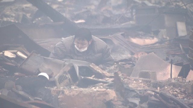 「父が早くに亡くなっている。写真や思い出の物があったので(探しに来た)全部燃えたかな…(Q.今後の生活は?)わからないです」