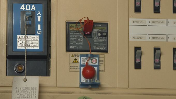 これは「感震ブレーカー」。地震の揺れを感知して自動的に電気を遮断し、出火を防ぐ目的で作られたものです。揺れで重りが落ちると同時に、ブレーカーも落ちて通電がストップします。