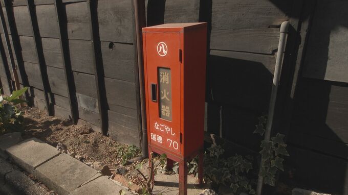 大人3人が横に並ぶと塞がってしまう細い道、消防車両は入れません。御劔学区内には、住民たちが自ら初期消火できるように約70本の消火器を設置。さらに140か所に消火栓があり、消防士がいなくとも住民が直接ホースをつないで、毎分100リットル以上の放水もできます。