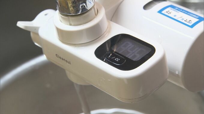 「こちらが浄水器です。去年の夏に報道があって近くのホームセンターで購入しました。(Q.PFASの問題が発覚してから購入?)そうです」