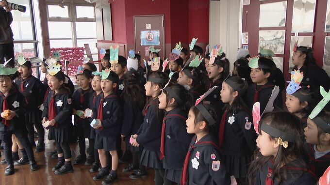 約150人の園児らは鬼に力いっぱい豆をぶつけていました。守山区のひまわり幼稚園は6年前からこの展望台で豆まきをしていて、2日はエンタメ集団BMKのメンバー2人もゲストとして参加しました。