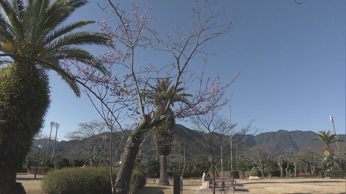 三重県尾鷲市で早咲きのカンヒザクラが見ごろを迎えています。中部電力の発電所跡地に咲くカンヒザクラは発電所が稼働を始めた60年ほど前に植えられたもので、早咲きのサクラとして市民に親しまれています。関係者によりますと今季は例年よりも3か月ほど早い去年10月ごろに季節外れの花が数輪咲きましたが先月続いた暖かさで一気に開花し今が見頃となりました。花は、2月中ごろまで楽しめるということです。
