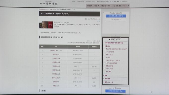 去年の獲得賞金・対局料は史上最高額に