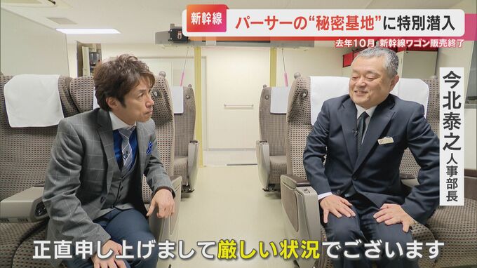 早速、大石アンカーマンがグリーン車にコーヒーを運ぶ業務を体験しますが、挨拶から厳しい指導が入ります。