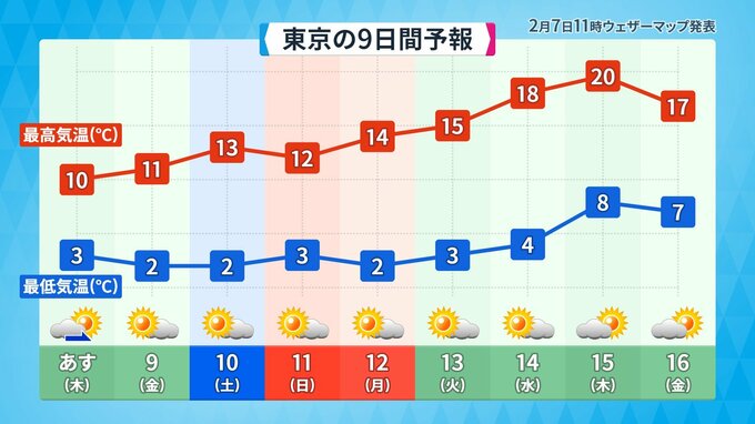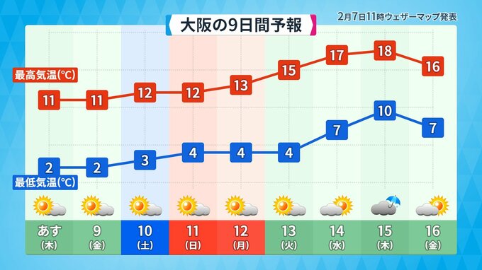 特に15日(木)は東京の最高気温は20℃、大阪は18℃の予想となっています。