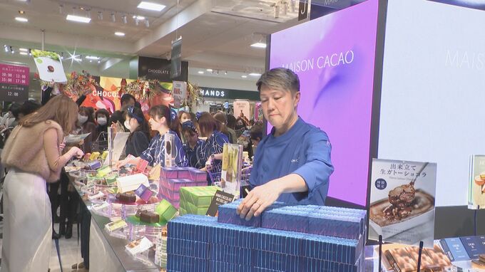 ジェイアール名古屋タカシマヤで開かれている「アムール・デュ・ショコラ」。8日は平日ですが、お目当てのチョコを買い求める人たちで賑わっています。