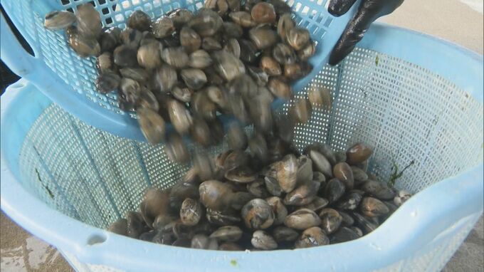 去年6月の大雨の影響などで、養殖アサリの数が少ない上燃料費の高騰などもあり、ことしの価格は1キロ4000円と例年より2割ほど高くなりましたが、身がぷりぷりで肉厚のおいしいアサリに仕上がったということです。