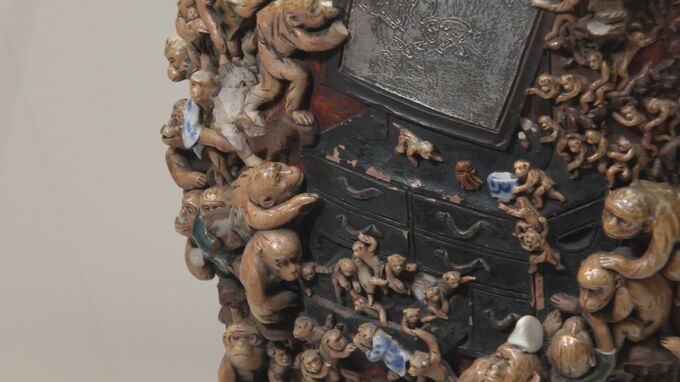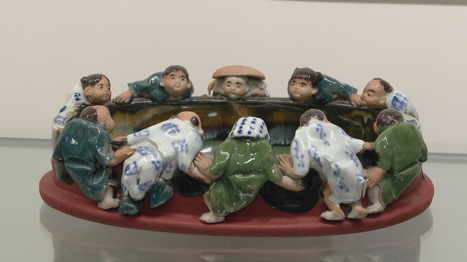 隅田焼は、人間や龍、魚などの立体的な造形物を装飾として施しているのが特徴で、江戸の情緒が感じられるなどとして海外でも人気となり、盛んに輸出されたということです。