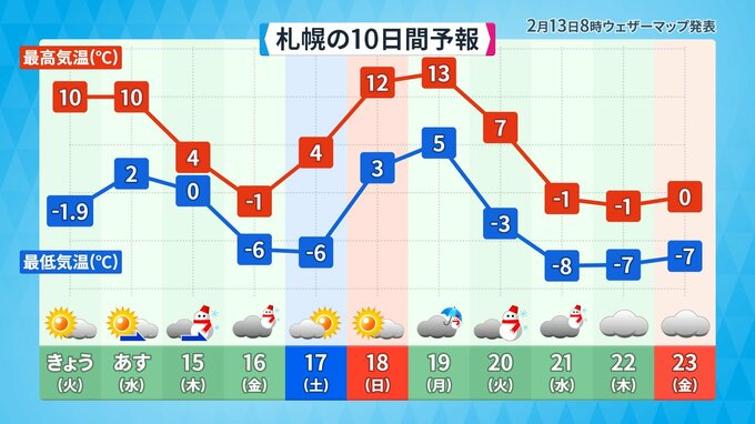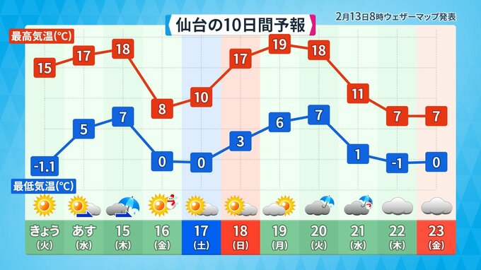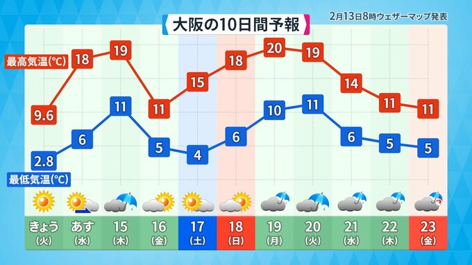 19日(月)は、新潟で平年比よりも+13℃、札幌は+11℃ 東京・大阪は+8℃の予想になっています。気温の変化が大きくなっているので、体調の管理にお気を付けください。