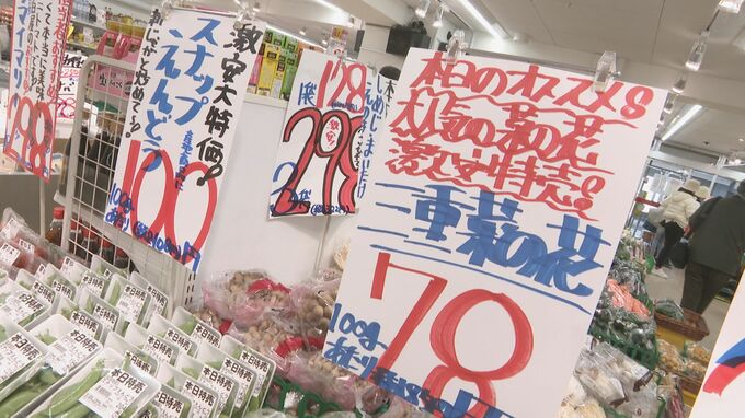 暖冬の影響で、菜の花やスナップエンドウなど、春が旬の野菜が平年より1か月ほど早く、旬の時期を迎えたような品揃えになっているといいます。