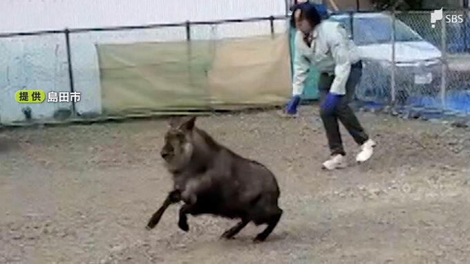 「カモシカがいる」現れたのは駅近くの住宅街…警察や市などがニホンカモシカ「保護…