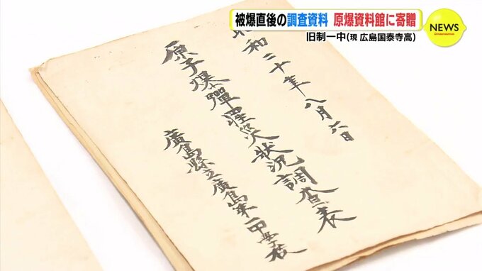 旧制一中(現 広島国泰寺高) 被爆直後の調査資料 原爆資料館に寄贈 学校単位では…