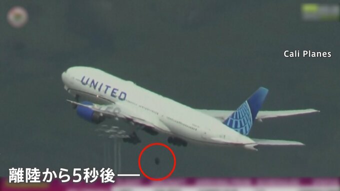 離陸直後の旅客機からタイヤが落下 アメリカ・ユナイテッド航空 ボーイング777型…
