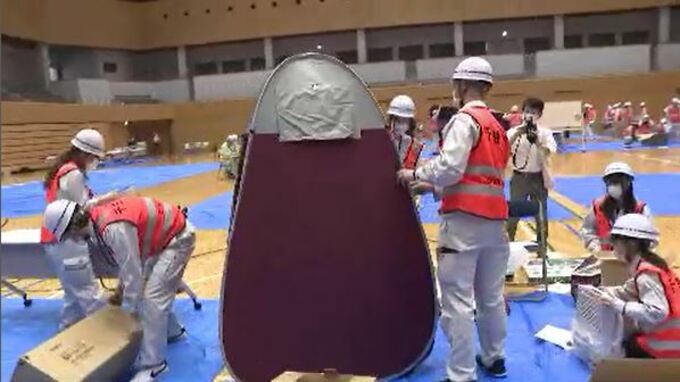 梅雨の大雨シーズン前に避難所開設の訓練 千曲市の職員がスムーズな設営や運営方法…