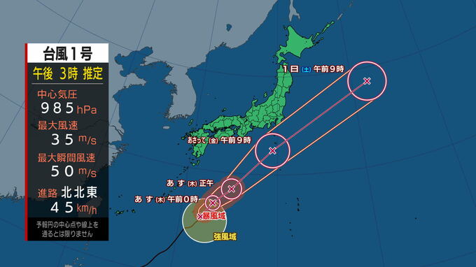 【台風情報】強い台風1号は北上し本州に接近 瞬間風速は最大50mも…31日頃は東海・…