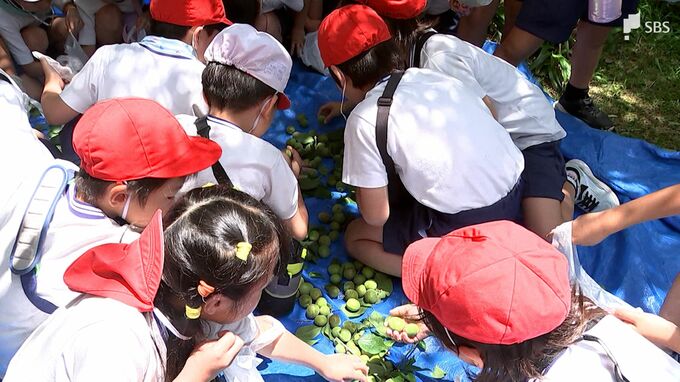 「拾うの楽しかった」「食べ方ユーチューブで調べる」小学生が梅の実収穫に挑戦=静…