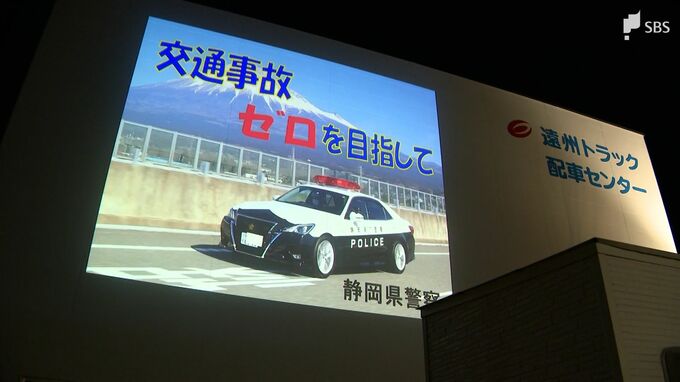 企業のビルにプロジェクションマッピング 交通マナー呼びかけ 地元企業と警察が協…