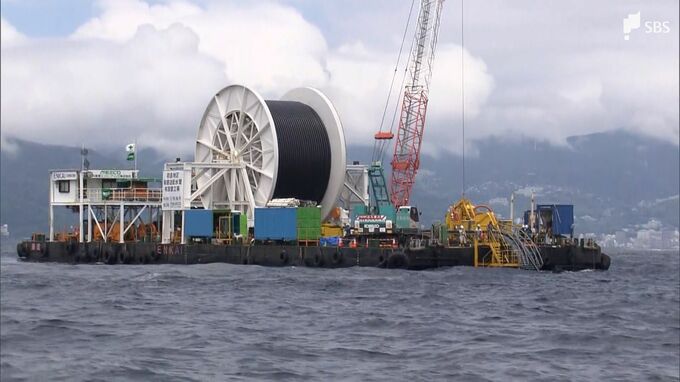 熱海~初島間 約6,700メートルの水道管を海底に 敷設工事を公開 管は塩害にも強い…