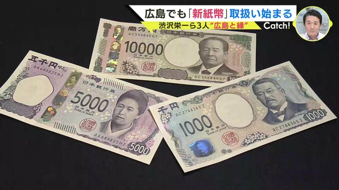 渋沢栄一ら3人とも “広島と縁” 新紙幣の取り扱い始まる 扇形に開いた銀行員の反応は?