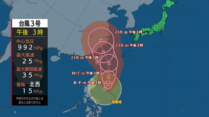 【台風情報】台風3号は今後「非常に強い」勢力に発達へ 最新の予想では24日に中心が…