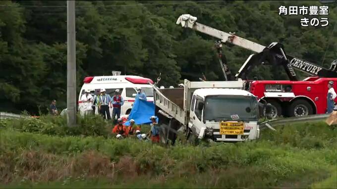 軽乗用車が10トンダンプカーの下敷きに 軽乗用車の46歳会社員の男性が死亡 6人が…
