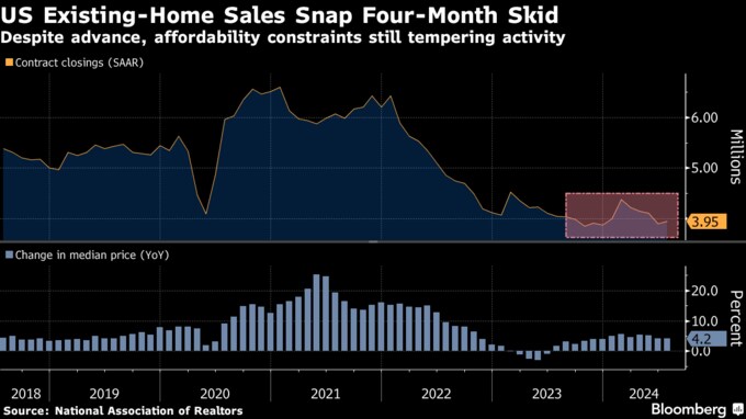 米中古住宅販売、5カ月ぶり増加-ローン金利低下で安定化の兆し