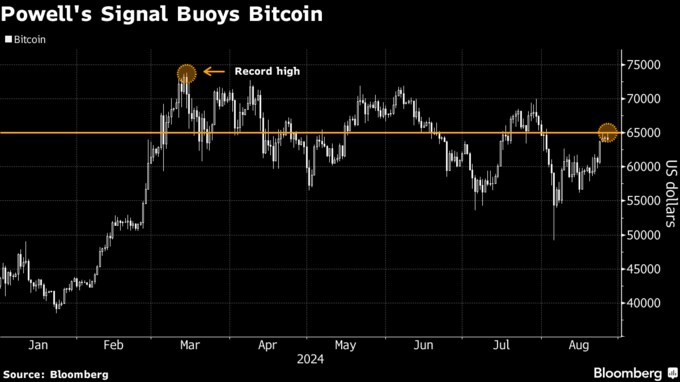 ビットコイン、一時6万5000ドル台回復-米利下げ期待で3週間ぶり