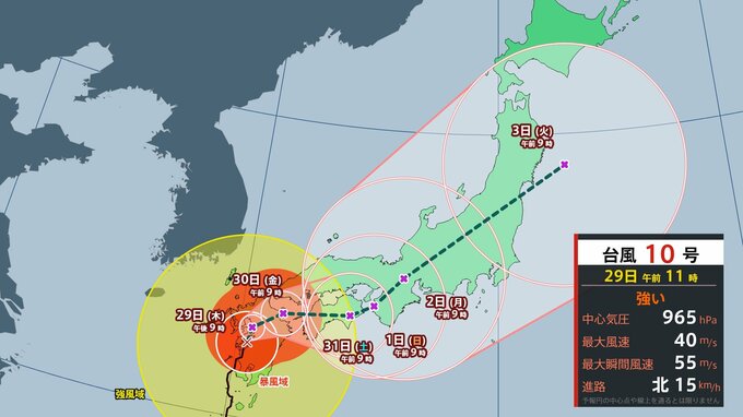 【台風情報】強い台風10号は九州横断中…ノロノロ迷走で週明け2日(月)まで九州 四国…