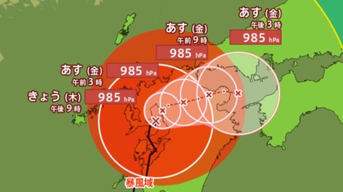 台風10号・少々右へ… 現在は長崎県「島原市付近」“ノロノロ”と迷走中…中心気圧9…