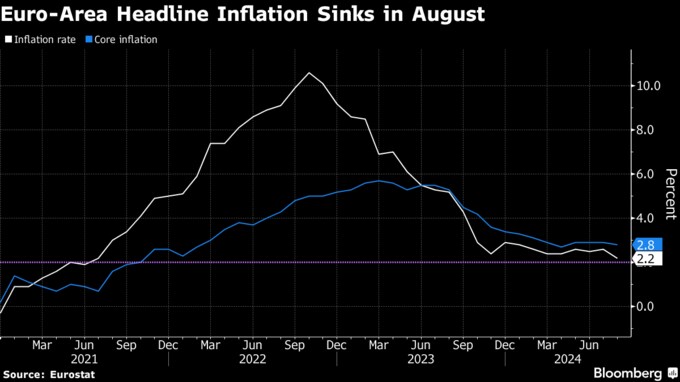 ユーロ圏インフレ、8月は3年ぶり低水準-ECB利下げ観測強まる