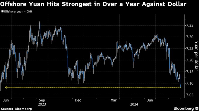 オフショア人民元、対ドルで2023年6月以来の高値