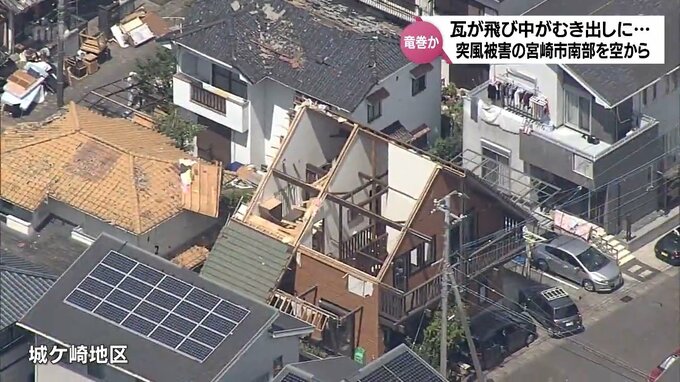瓦がなくなり中がむき出しになった住宅も 竜巻とみられる突風被害の宮崎市南部を空…