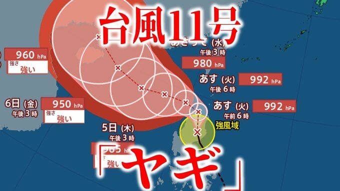 【台風11号情報】「ヤギ」フィリピンに上陸 5日に「強い勢力」となりその後「中国大陸」へ向かうか 今後の進路・勢力は?【最新進路予想図・気象庁データ・雨と風のシミュレーションも(2日午後9時更新)】