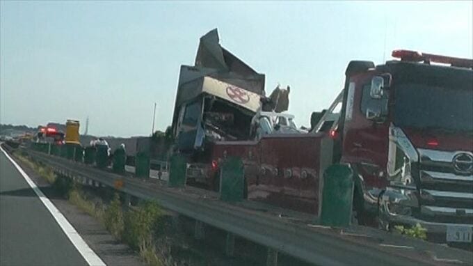 中央道・下り線 八王子IC-八王子JCTが通行止め トラック2台の事故