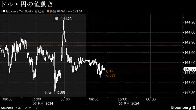 円は143円台前半で強含み、米大幅利下げ観測くすぶる-雇用統計注視