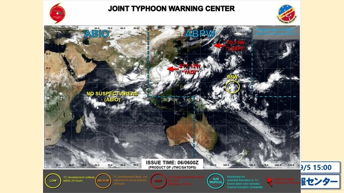 日本のはるか南の海上の雲域 今後発達して台風になる可能性は 海外予報機関の監視…