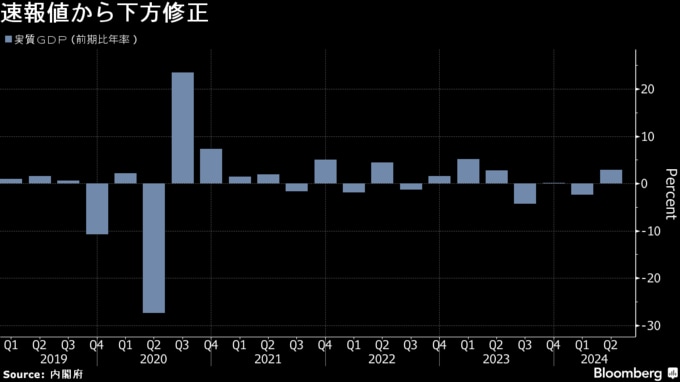 4~6月実質GDPは下方修正、年率2.9%増-設備投資や消費下振れ