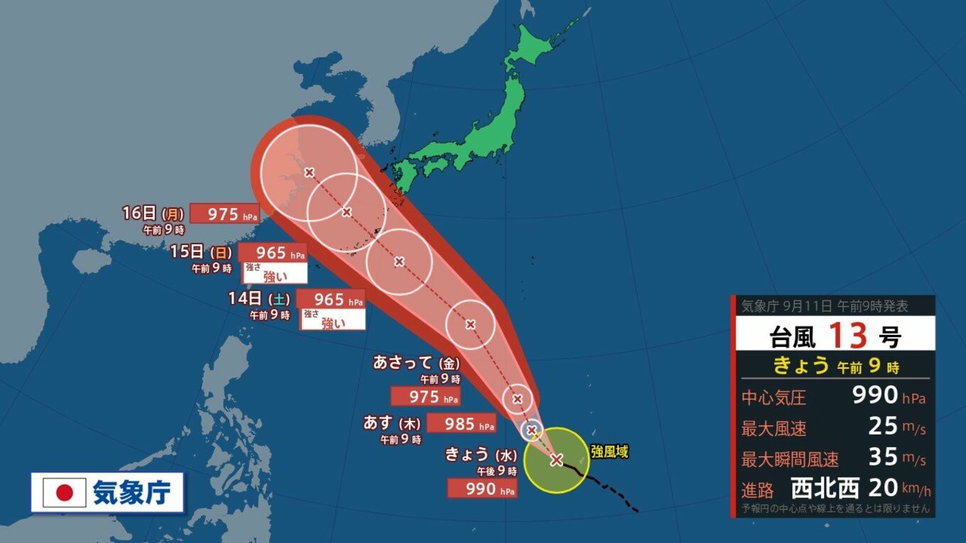 【台風情報】台風13号は3連休に沖縄方面に大きな影響おそれ 一方で沖縄の西の熱帯…