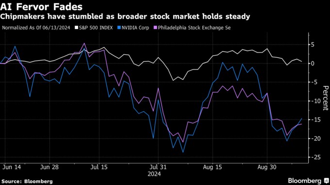 画像 1/2 動画:ブルームバーグ・テレビジョンで話すマイク・ウィルソン氏 写真の記事を読む スクロールで次の画像へ 画像 2/2 S&P500種株価指数とエヌビディア株、フィラデルフィア半導体株指数 写真の記事を読む